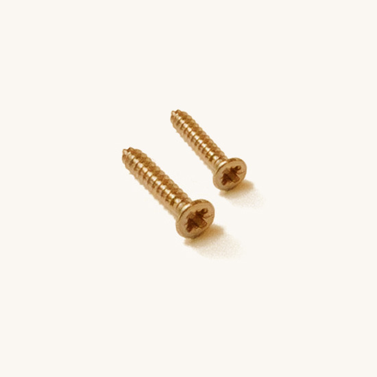 Deux vis de rechange en cas de perte. Nous incluons les mêmes vis que celles normalement fournies avec la plaque. Celles-ci sont de couleur laiton, "or".